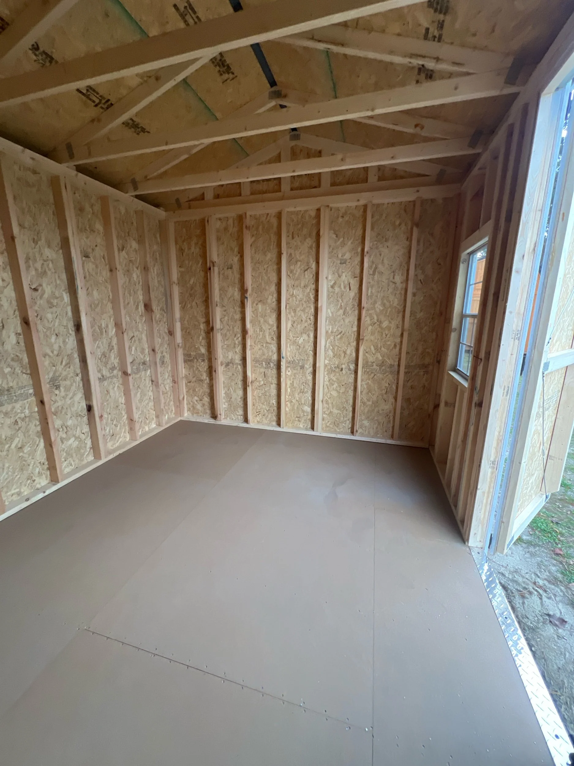 Description: Zone: 5 - Type: UX - Subtype: Garden Shed - Size: 10x12 - Siding: Paint, Fossil - Siding Type: SmartSide - Trim: Pearl - Roof: Metal, Onyx - Flooring: LPSmartFloor - Floor Stud Spacing: 16\