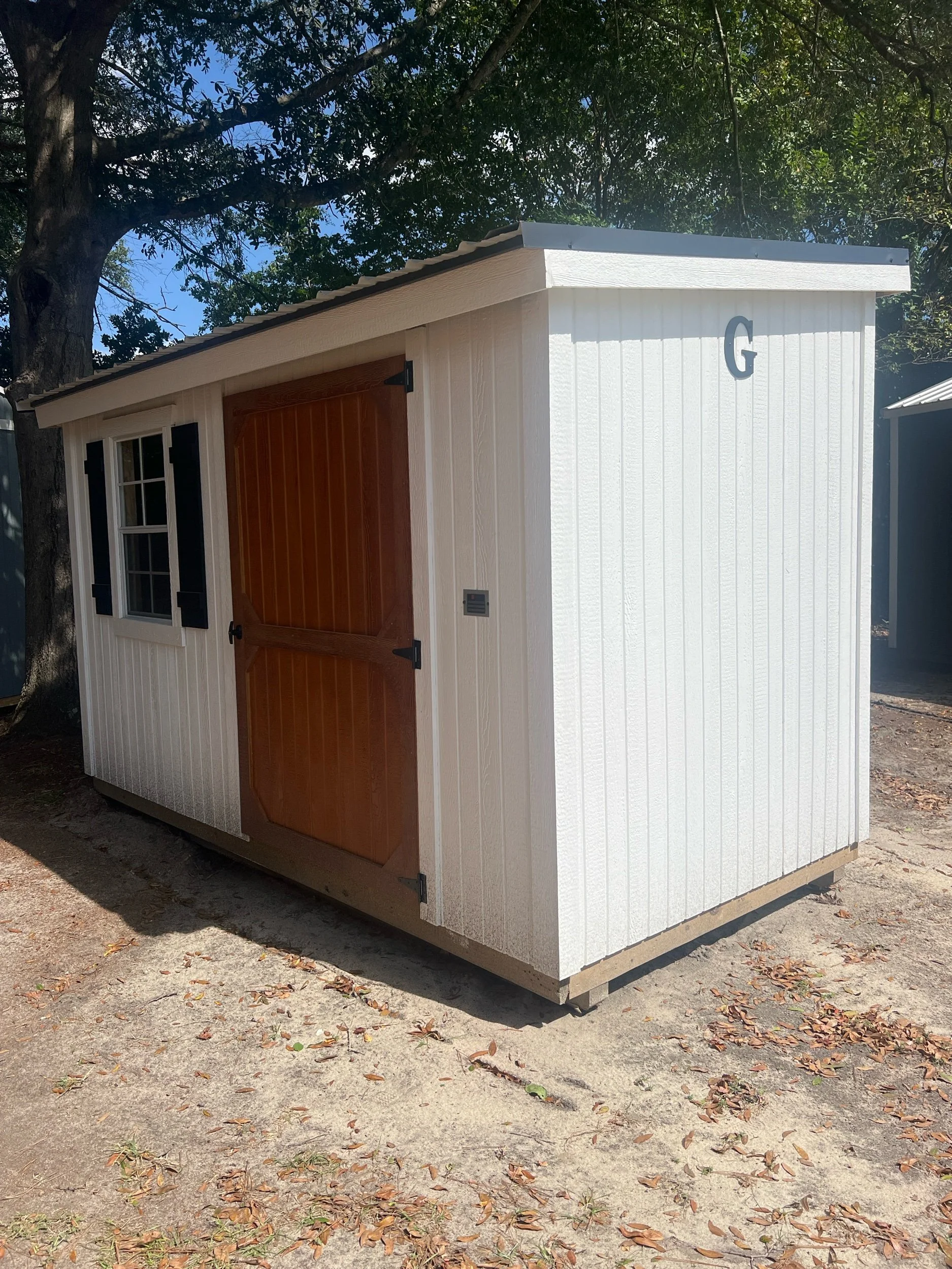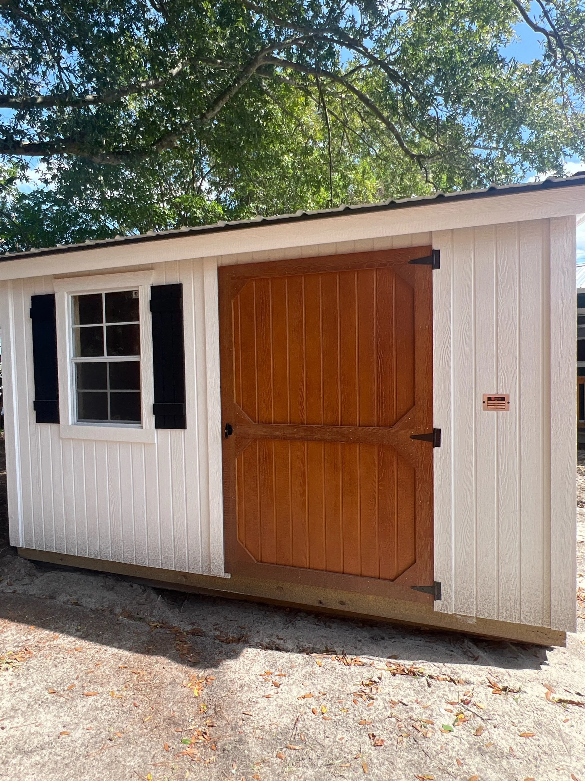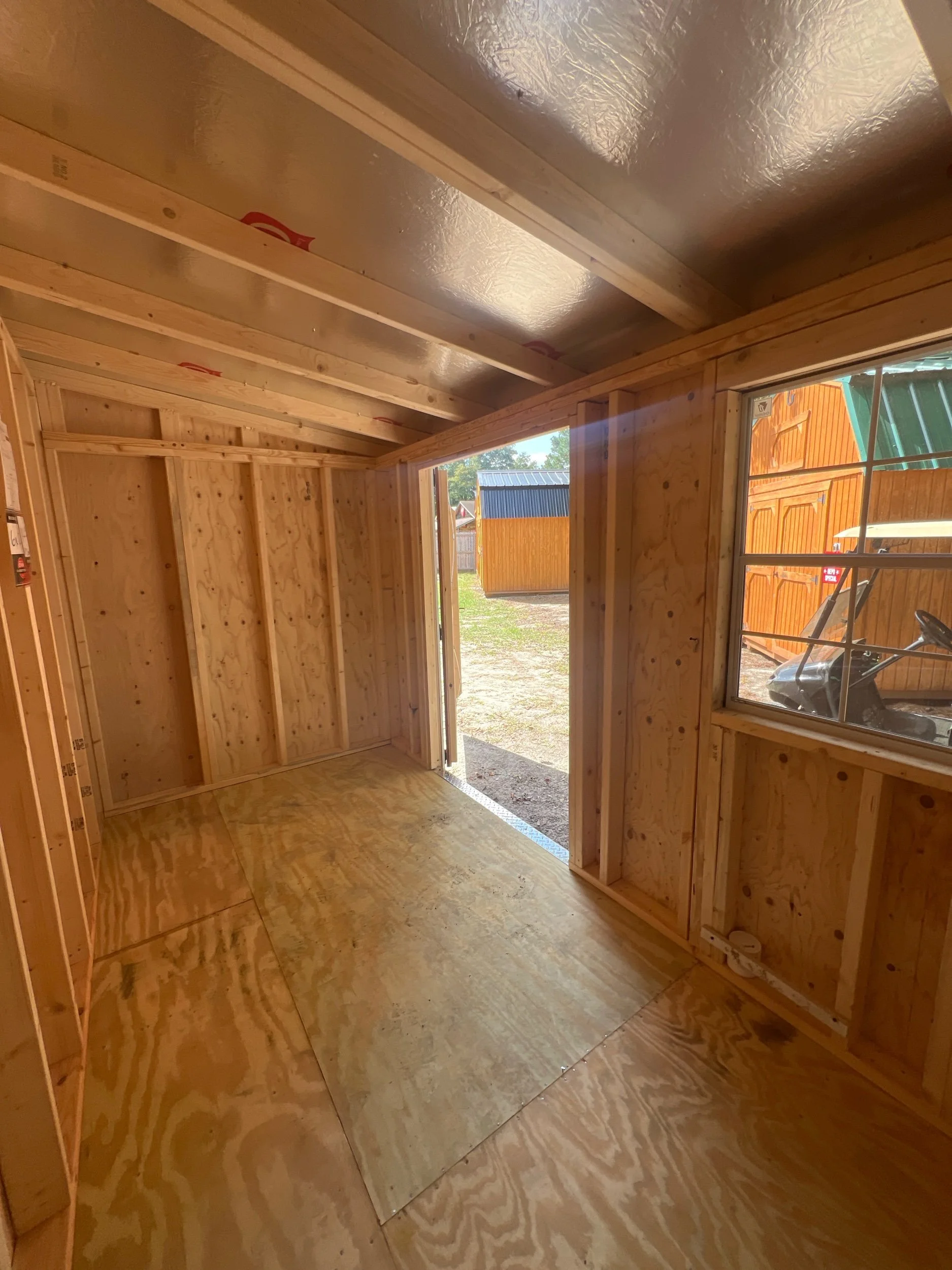 Description: Zone: 5 - Type: MS - Subtype: Standard Build - Size: 06x12 - Siding: Paint, Light Khaki - Siding Type: DuraTemp - Trim: Pearl - Roof: Metal, Onyx - Flooring: TreatedPlywood - Floor Stud Spacing: 16\