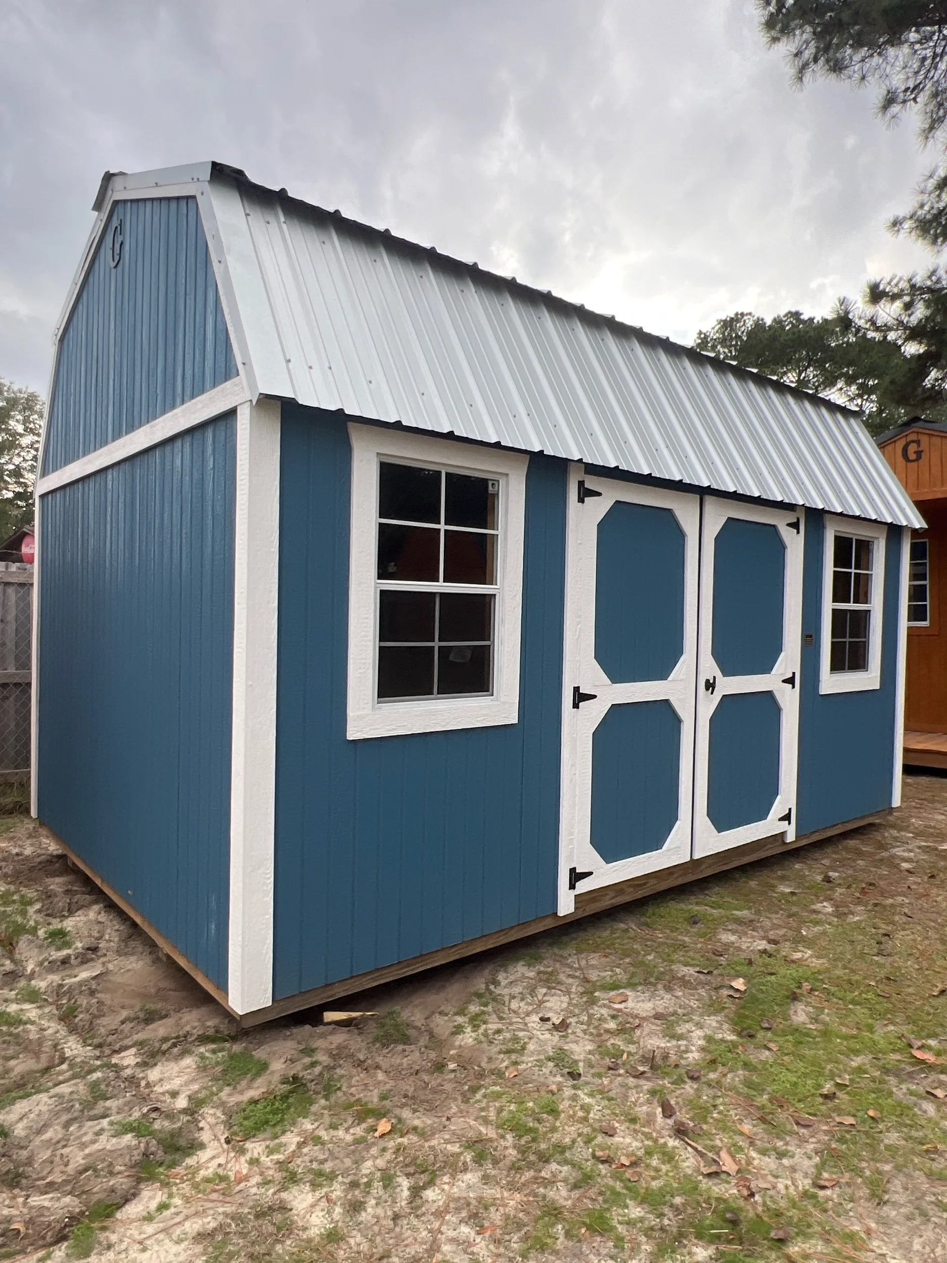 Description: Zone: 5 - Type: LB - Subtype: Side Lofted Barn - Size: 10x16 - Siding: Paint, Blue Slate - Siding Type: DuraTemp - Trim: Pearl - Roof: Metal, Platinum - Flooring: TreatedPlywood - Floor Stud Spacing: 16\