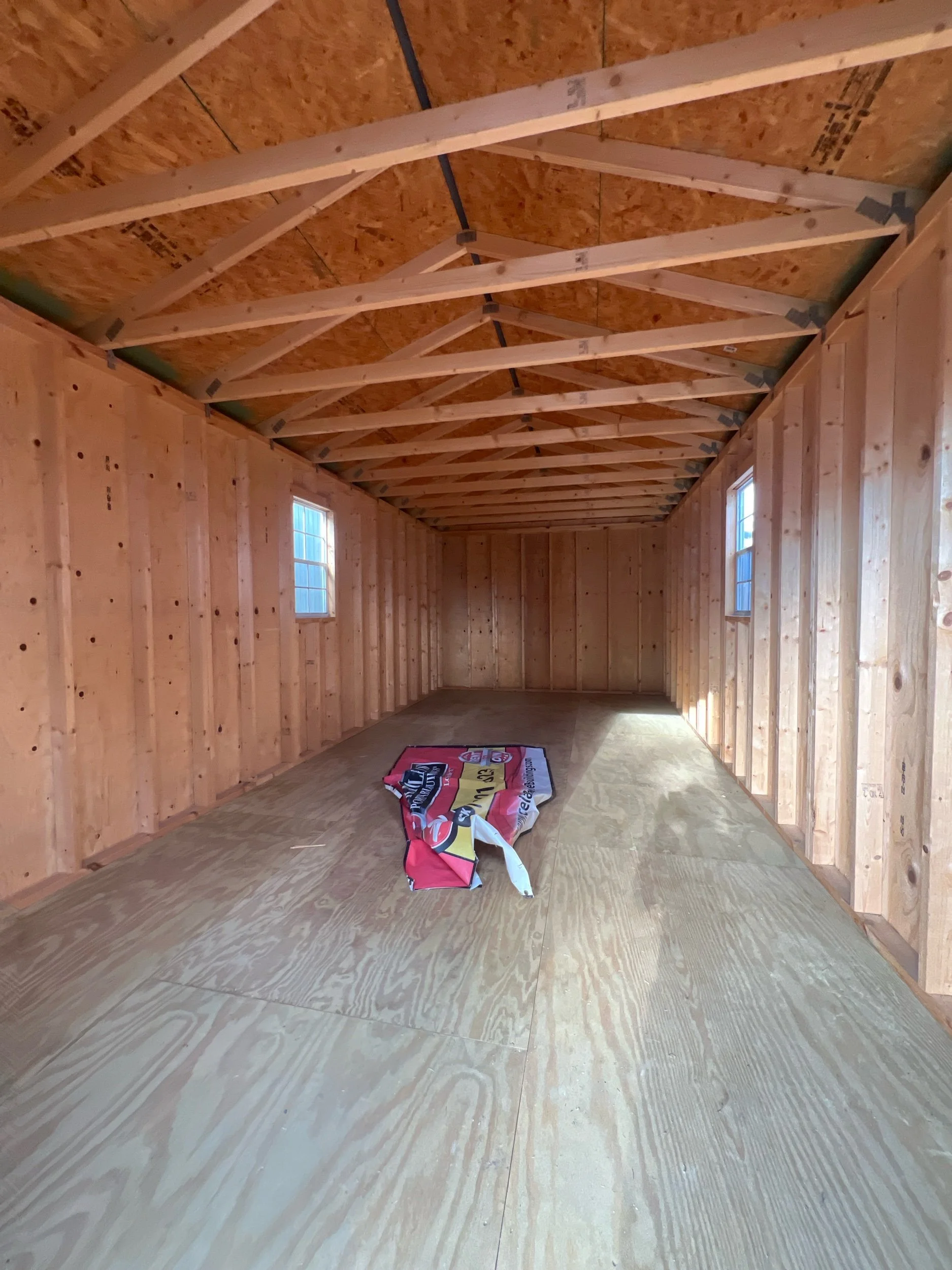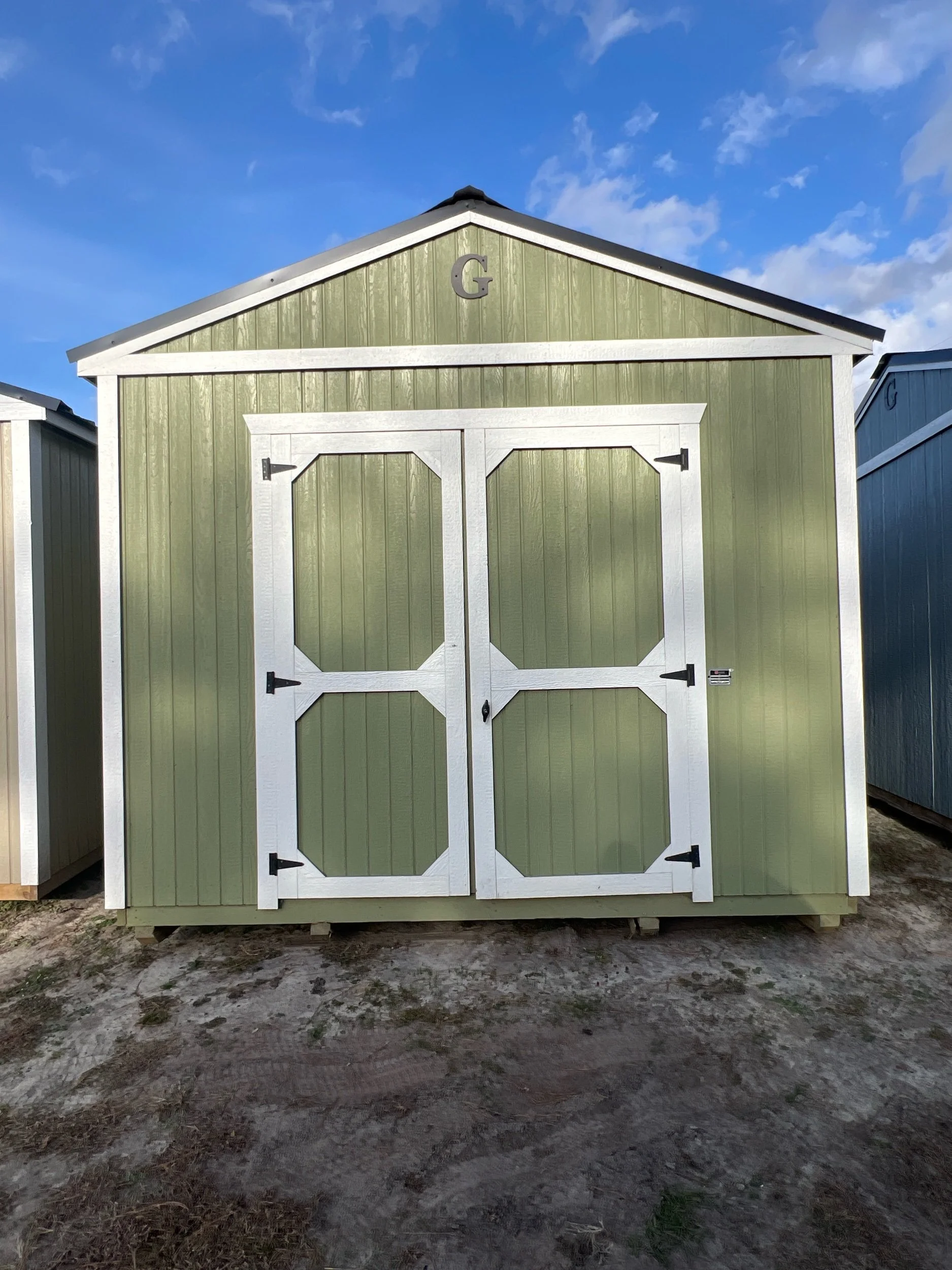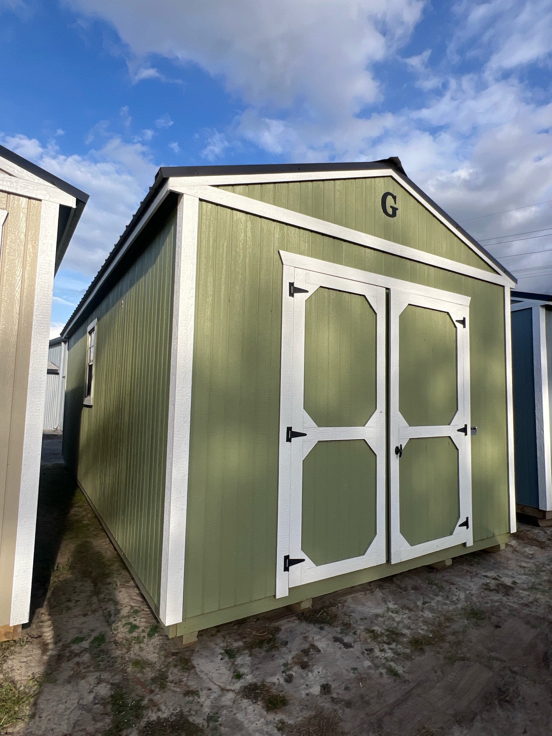 Description: Zone: 5 - Type: Utility - Size: 12x24 - Siding: Paint, Olive - Trim: Pearl - Roof: Metal, Black - Windows: 2/2x3SP - Doors: 1/DW - Radiant Barrier: No