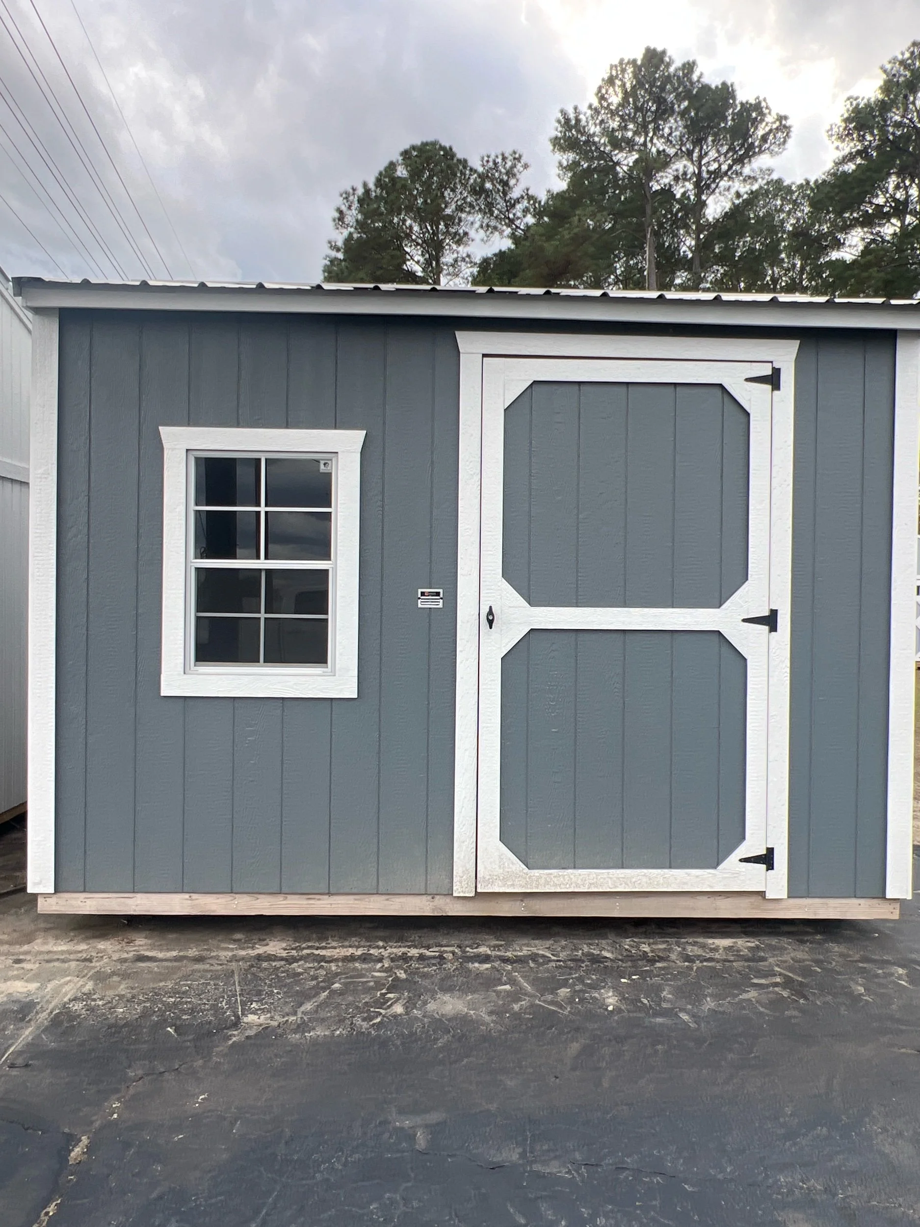 Description: Zone: 5 - Type: UX - Subtype: Garden Shed - Size: 08x12 - Siding: Paint, Graphite - Siding Type: SmartSide - Trim: Pearl - Roof: Metal, Smokey Gray - Flooring: LPSmartFloor - Floor Stud Spacing: 16\
