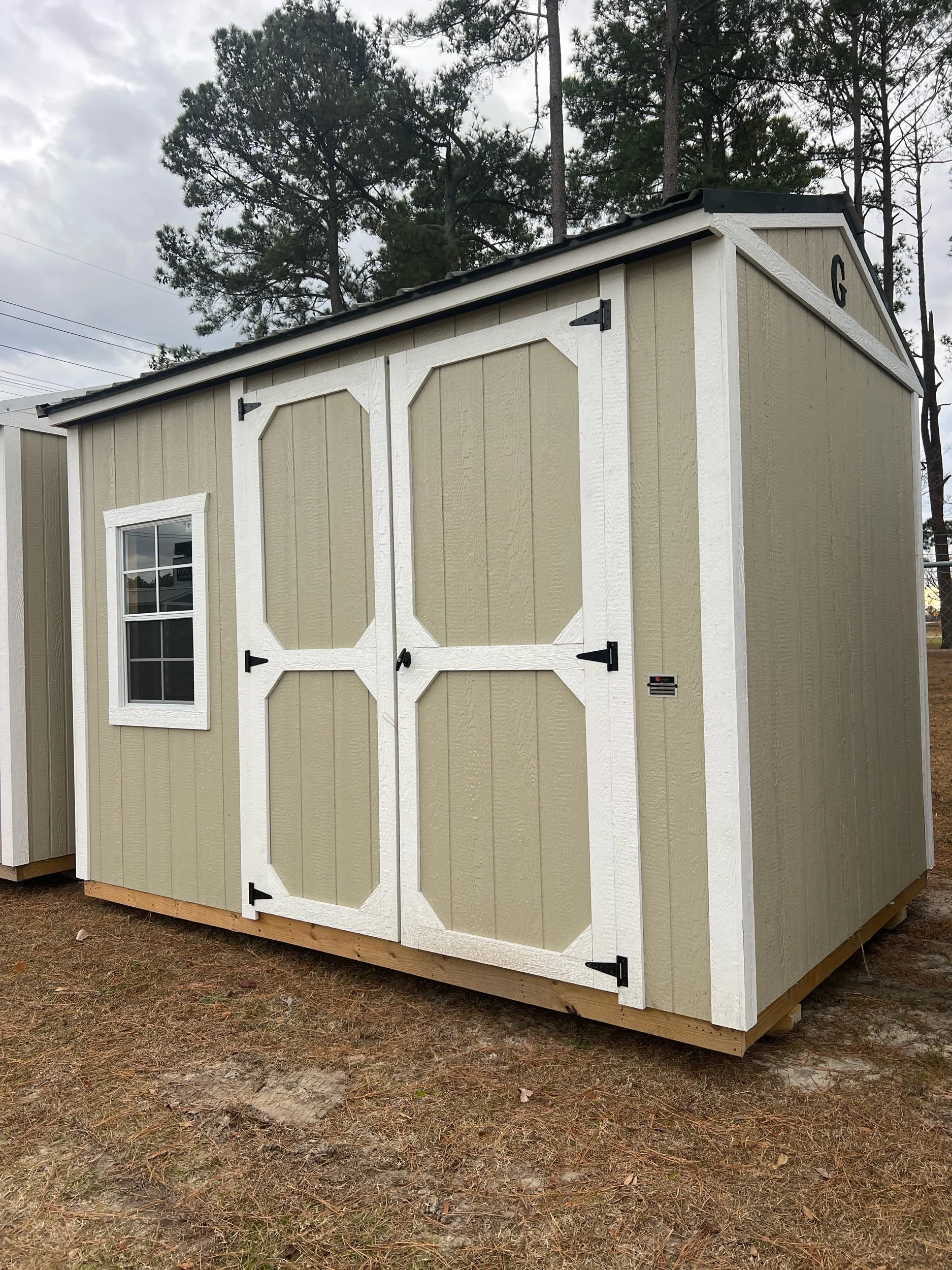 Description: Zone: 5 - Type: UX - Subtype: Garden Shed - Size: 08x12 - Siding: Paint, Light Khaki - Siding Type: SmartSide - Trim: Pearl - Roof: Metal, Onyx - Flooring: LPSmartFloor - Floor Stud Spacing: 16\