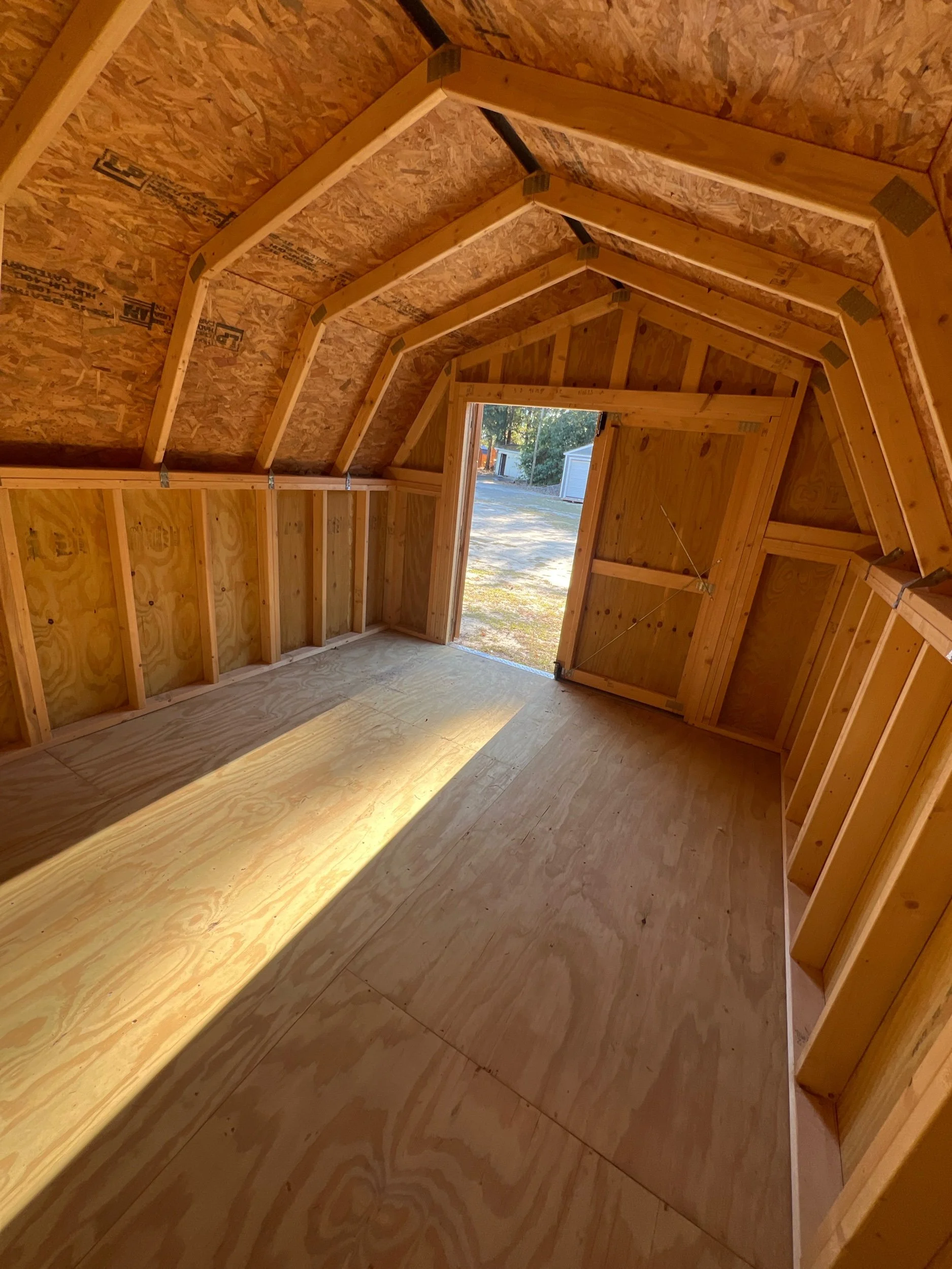 Description: Zone: 5 - Type: Barn - Size: 10x12 - Siding: Standard Stain, Honey Gold - Trim: Honey Gold - Roof: Metal, Green - Windows: - Doors: 1/DW - Radiant Barrier: No